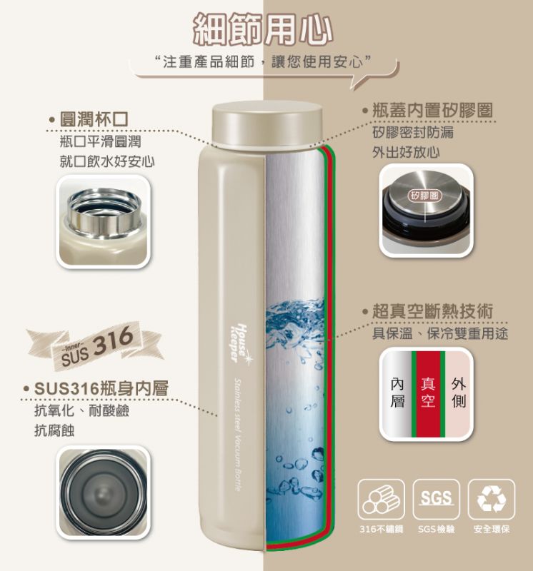 妙管家316多角隨行保溫杯-咖