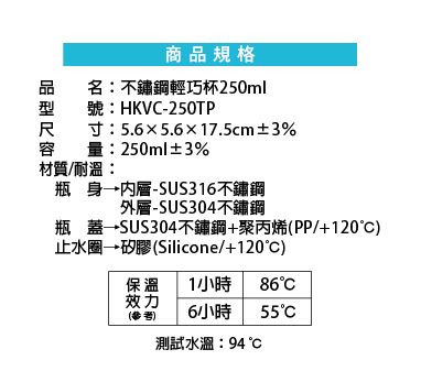 不鏽鋼輕巧杯250ml-內316外304