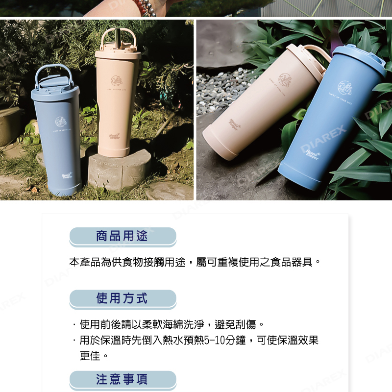 妙管家手提陶瓷雙飲杯860ml-灰藍