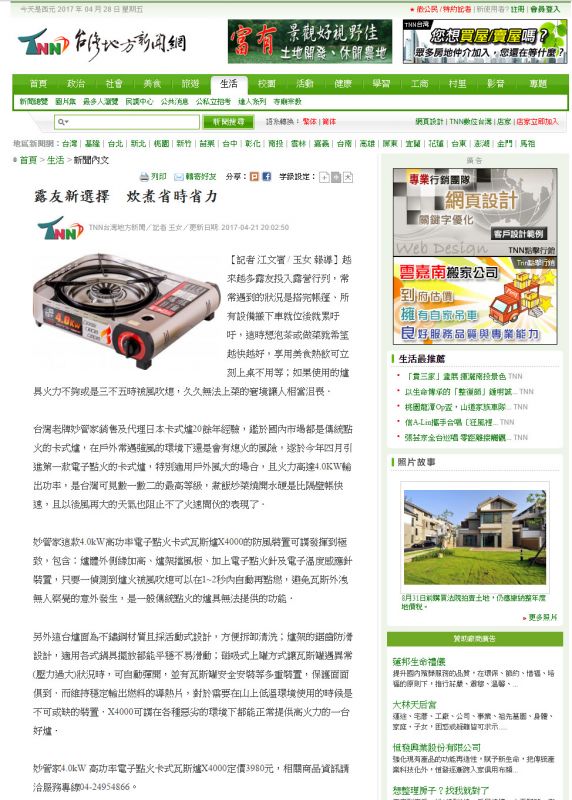 TNN台灣地方新聞--妙管家電子點火卡式瓦斯爐報導