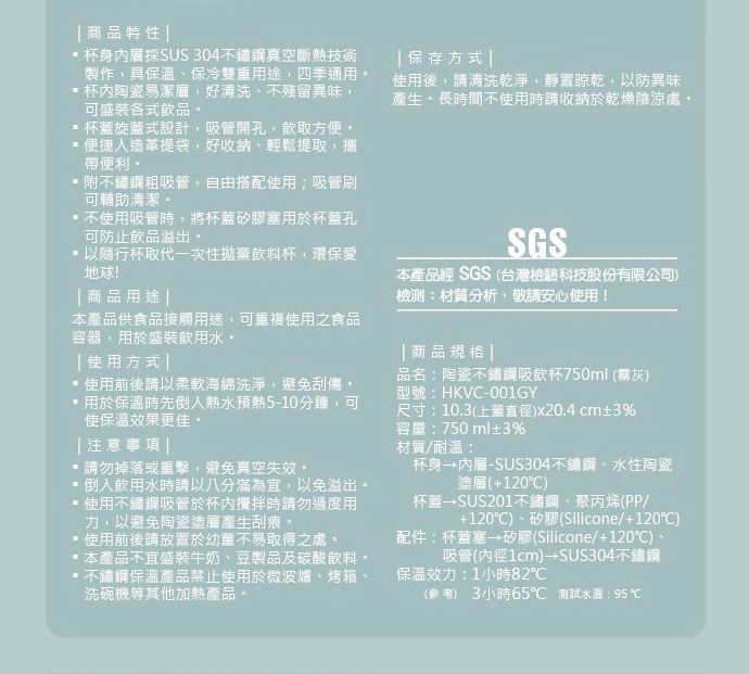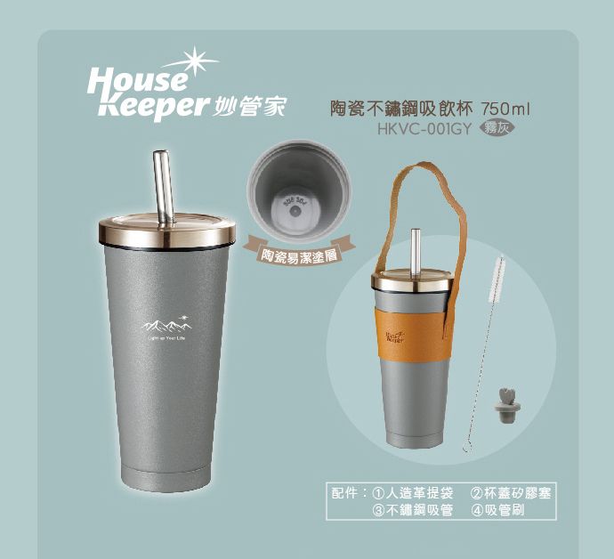 陶瓷不銹鋼吸飲杯750ml-霧灰