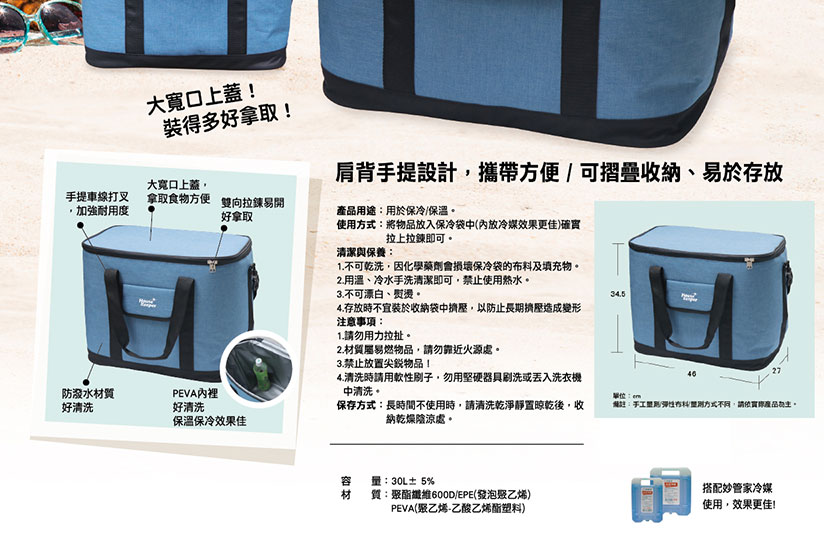 藍色保冷袋 30L