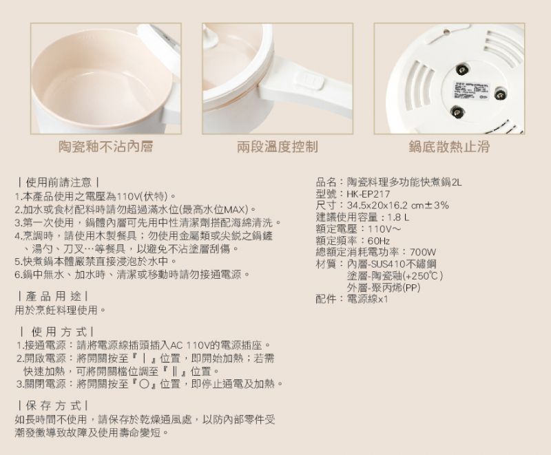 妙管家陶瓷料理電火鍋 2.0L