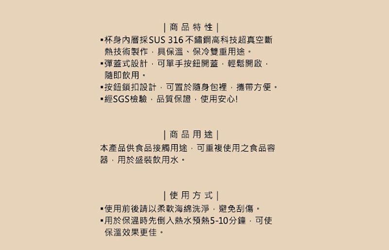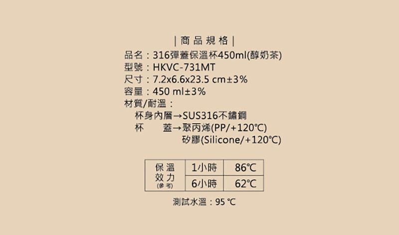 妙管家#316彈蓋保溫瓶450ML-醇奶茶