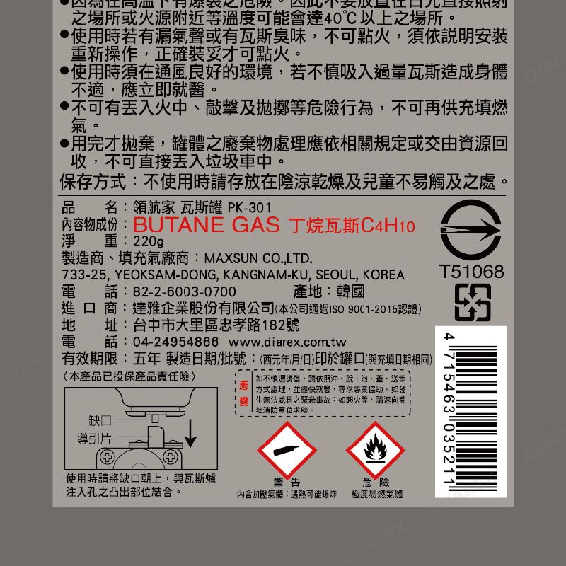 領航家卡式瓦斯罐 220G
