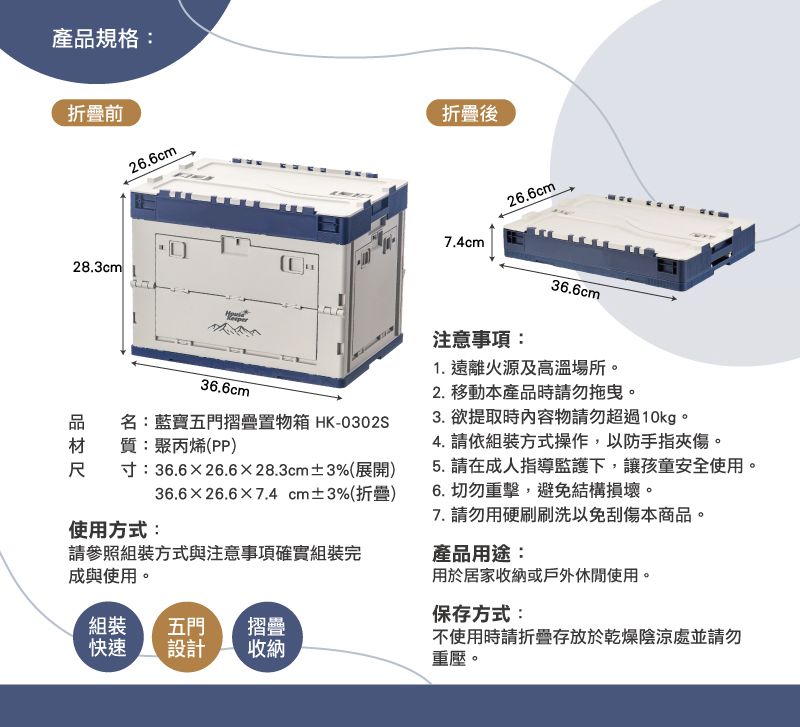 妙管家藍寶五門摺疊置物箱