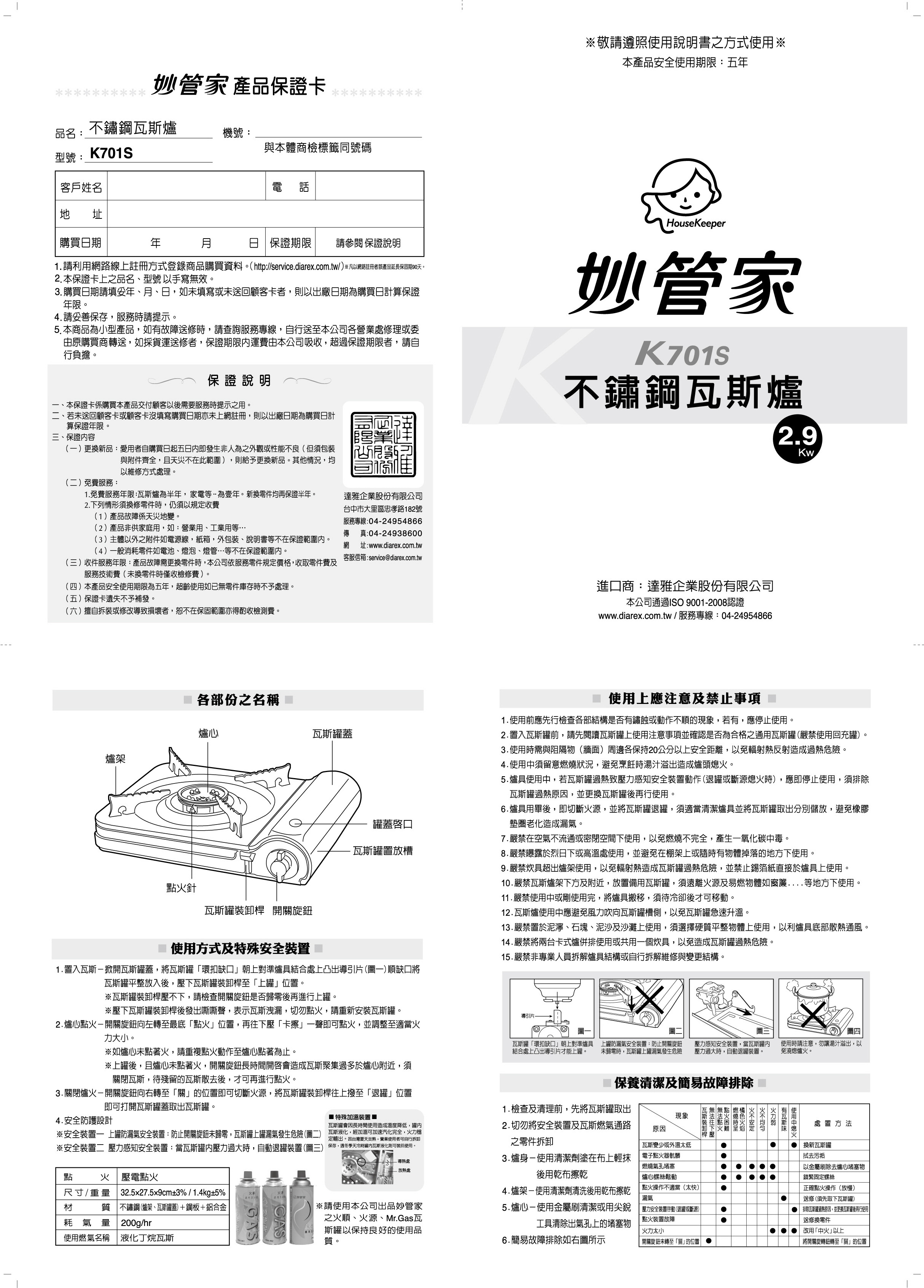 商品操作使用方式同妙管家 K-080 & K-090系列瓦斯爐(K701S瓦斯爐之爐架不須翻面)