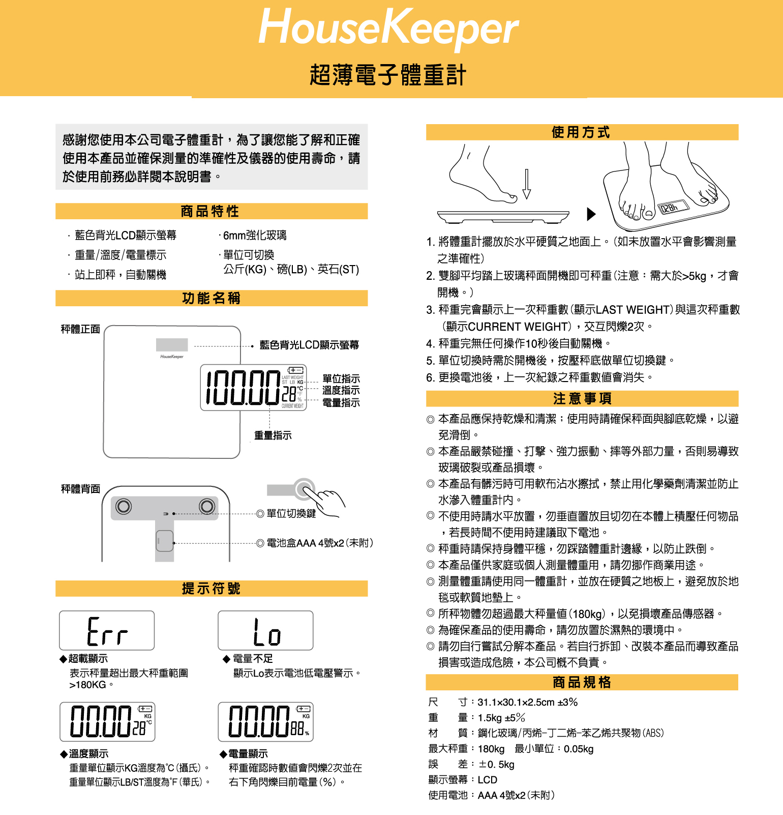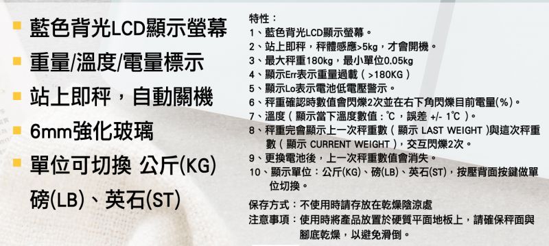 【最大秤重】180Kg 最小單位:0.05kg