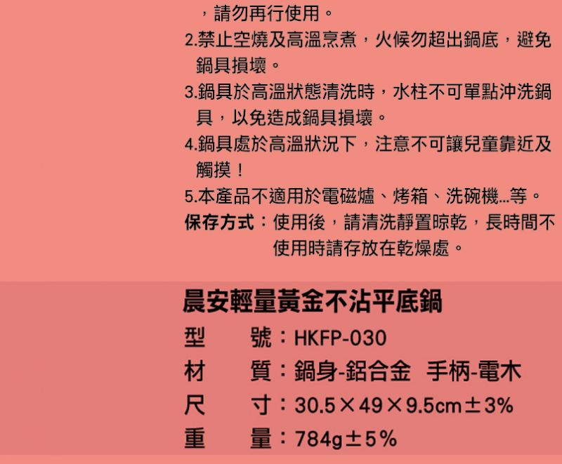 30cm晨安輕量黃金不沾平底鍋