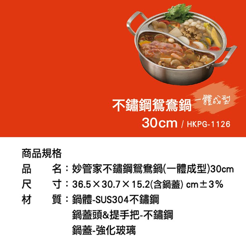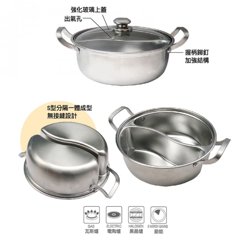 不鏽鋼無接縫鴛鴦鍋 30cm