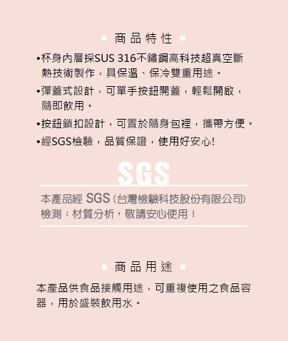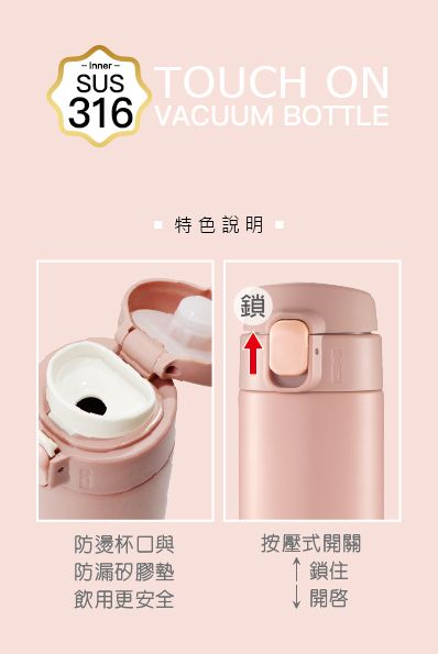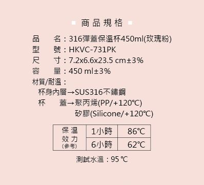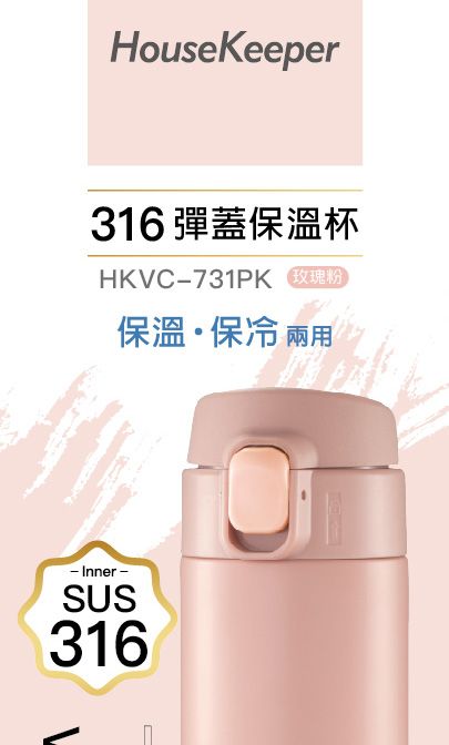#316彈蓋保溫杯 (玫瑰粉) 450ml