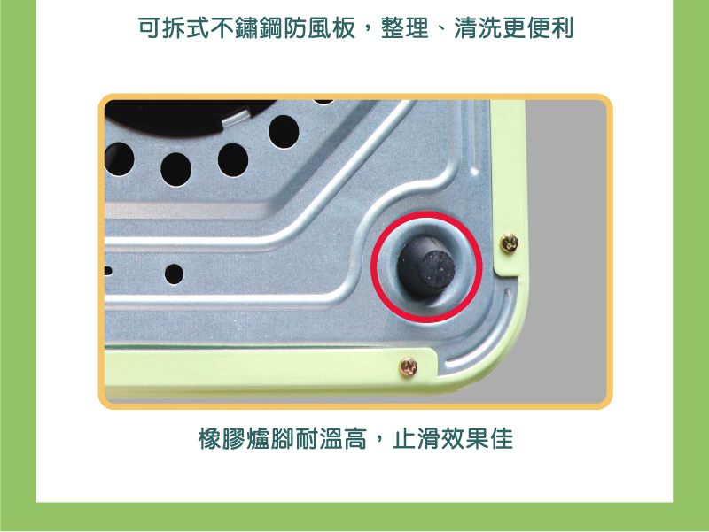 •可拆卸4片不鏽鋼防風版。